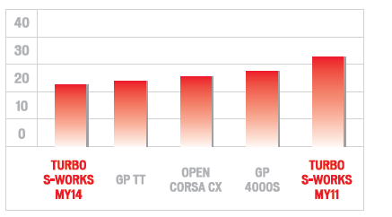 Specialized tells us that the net result is a 70 second improvement over the old tire in a 40k time trial, and a 35 second improvement over the Continental GP4000 S.
