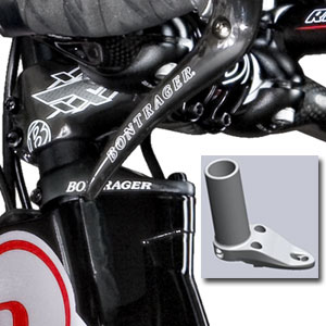 Thankfully, Trek has anticipated my dilemma, and it offers a "steerer stub" (pictured adjacent). This converts the 9 Series models into a bike style you're more familiar with. With the steerer stub you can place any 1-1/8" stem on the bike, and, any aerobar you want. This converts a 9-series bike into something I can easily fit aboard. I keep the other aerodynamic elements native to the 9 Series, specifically the fork and the recessed brake calipers, but, I gain the modularity to use my choice of aerobar.