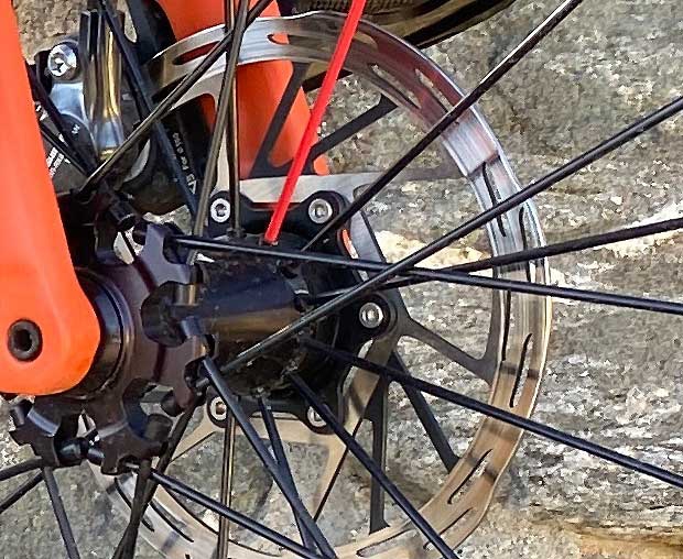 Hubs are made with “either a high strength forging process or a high strength machined aluminum billet process” and I assume that means the expensive versions are machined and the cheaper forged. Thanks, but I’ll take the forged. Cassette assemblies are from Hadley (I have a lot of good experience with these going back to my bike maker days) and you can get these wheels with driver bodies compatible with Shimano up to 12-speed, SRAM XDR, and Campagnolo up to 13-speed. I believe the wheel is substantially made in North America, that is, its assembly and most of its materials come from that continent.