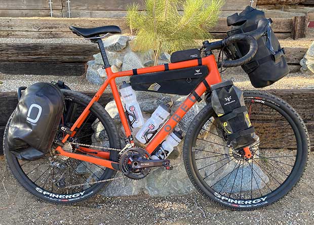 But Spinergy’s gravel wheels are another matter. The wheels you see on this bike pictured cost $739 a pair and you see the use I’ve chosen for them: They’re on my bikepacker. For my intended purpose I honestly don’t know what I’d gain by spending 3x or 4x what these wheels cost. (Our editor Ryan Heisler chose Spinergy for his Obed as well.