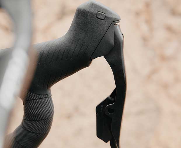 RED XPLR’s crankset has a Q factor of 150mm which is just like road, as opposed to the 170mm or 175mm Q found on MTB groupsets. Crank lengths range down to 160mm. The power meter is a threaded, spin-on, rather than the more familiar 8 bolt direct mount. This allows the chain rings to be replaced. Claimed accuracy on the PM is +/- 1.5% and of course the PM tech is driven by Quarq, long a member of the SRAM family. Chain rings range from 38t to 46t, with available aero rings from 48t to 52t.