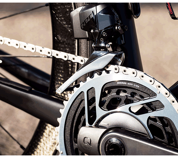 It’s clear that lower gearing is coming; what we don’t know is whether that’s in smaller rings (43/30) or in a wider gearbox in the back but if the latter, then a longer cage for the AXS RDs need to show up too.