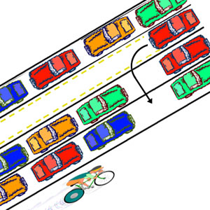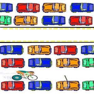 I wrote on this subject seven years ago, revised it five years ago, and revise it again today. I think it stands up fairly well, because cars still have four wheels, bikes two wheels, roads operate the same way and car doors still swing out when drivers enter and exit them.