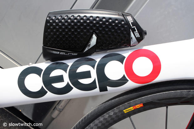 We removed the Ceepo Viper from the showroom floor to avoid hands, feet and bad lighting. The Kona bib number is Joe Tanaka's from when he raced there in 2013.