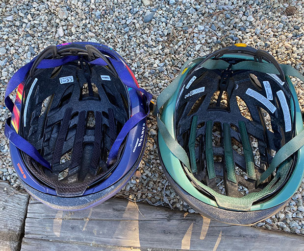 The Vanquish is about a 350g helmet in weight, and both the Helios and Eclipse are in the 275g range. I’m not a weightweenie. But… if you ride a lot of stationary rides – which I do – I don’t ride those with a helmet on. If I move outdoor on a weekend for a 4 hour ride after not having ridden with a helmet for weeks (because I’m Zwifting), it gets hard to hold up the weight of that helmet in the last quarter of that ride, notwithstanding the helmet’s light weight. The heavier that helmet is, the more I feel it. I have gotten full-blown Shermer’s neck (look it up) after only 4 or 5 hours of an outdoor ride, early in the season. I think that’s a combo of a lot of neck trauma (which I have); age (which I have); and enough fitness from Zwifting to go straight to a long helmeted outdoor ride. So, for me, the one item in cycling where weight really matters is the helmet.