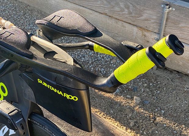 Here’s one way a Wireless Blip surely fails: It falls off the bike. In my opinion, the cages or mounts that SRAM makes for these are not adequate for use in triathlon. For example, in the pic above is where SRAM says you could put the Wireless Blip, versus where I placed it on my tri bike. I can pretty well promise you that if you put it right on the pursuit bar, where your hand goes, you’ll be shifting your bike by mistake, and often. I have mine mounted with a very aggressive 2-sided tape on the side of my pursuit lever (and SRAM does include 2-sided tape with these shifters). What requires a bit more strategizing is the bar end shifter mounting. Perhaps SRAM’s view is you just put that included clip around the extension. But then I’d have to add quite a bit of length to that extension. In the case of the Vision Metron TFE Pro extension's I have on my tri bike the length of the hand-hold is prescribed. My best bet is to put that shifter where SRAM already knows that shifter should be: as part of the extension plug.