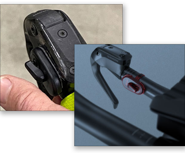 These Wireless Blips are light, they’re spare, they can pretty much be put anywhere on a bike. What they actually replace are a product SRAM calls Multiclics, which are wired remote shifters. Most of the AXS shifters that SRAM makes have ports that accept the jack from a Multiclic wire. The new Wireless Blips truly eliminate all wires. The only thru routing on an AXS-shifted bike, of any sort, for any discipline, are the hydraulic brake lines.