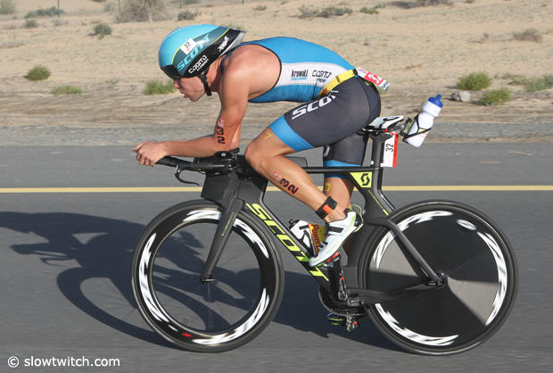 Scott Sports enlisted the talented young German Maurice Clavel to represent and race for them, and at Challenge Dubai we grabbed his Scott Plasma 5 to take a closer look. Although officially new to Scott, Clavel is very familiar with the brand as he trains under Lubos Bilek who also coaches Sebastian Kienle, and last year rode one of Sebi's older Scott race bikes.
