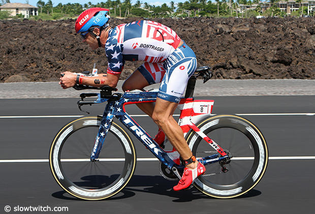 O'Donnell did beat his bib number in Kona, and the tires on those Bontrager Aeolus 7/9 wheels appear to be Specialized Turbo Cotton.