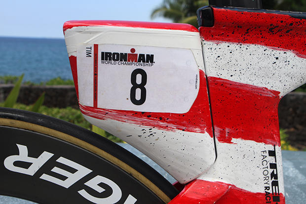 American Timothy O'Donnell had the top podium spot as a target when he came to Kona, and in the end finished 6th aboard this very distinctive patriotic themed Trek Speed Concept Project One. He and fellow American Ben Hoffman (who finished fourth) were completely sandwiched by an armada of Germans who grabbed 5 of the top 7 spots including the top 3 ones.