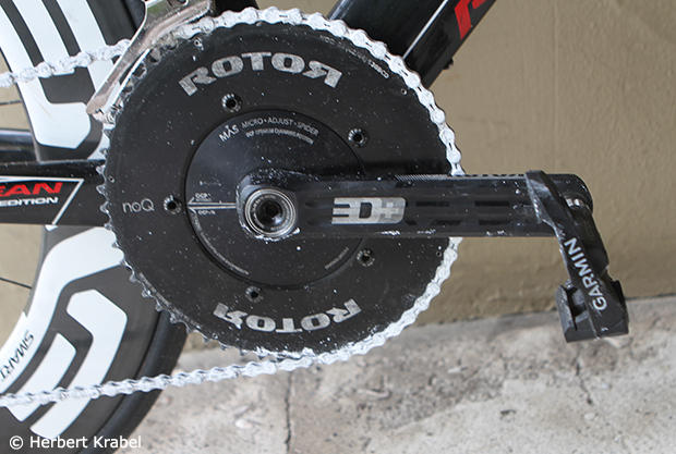 Amorelli rides 172.5mm Rotor 3Dplus cranks with nonQ Rotor rings and Garmin Vector pedals. Plus he has various CeramicSpeed goodies including the UFO chain and the OSPS pulley system.