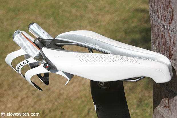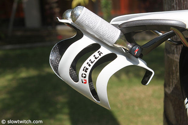 A single XLab Gorilla cage is mounted to the Specialized Sitero saddle bracket with 2 spare CO2 cartridges.