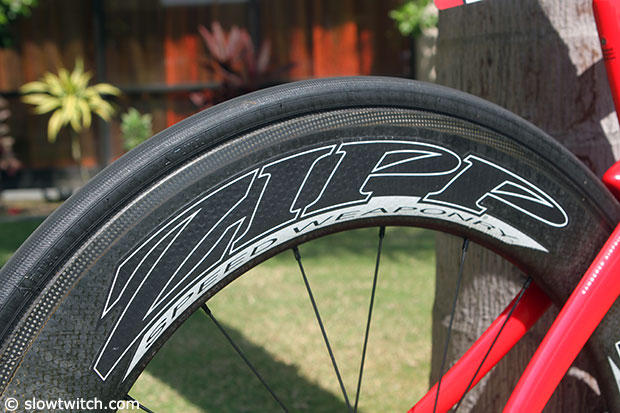 Zipp 808 Firecrest wheels front and back with Specialized S-Works Turbo 24mm tires.