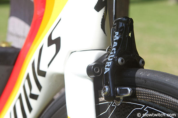 Specialized switched over to Magura hydraulic brakes recently. It requires a special adapter, but Stubleski likes the braking.