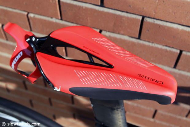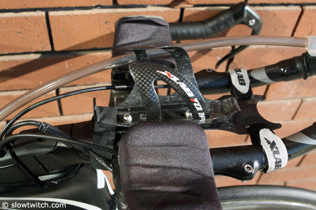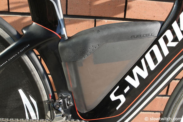 The FuelCell is new for Hauschildt and she carried a PitStop and all her gels in here. She also learned in the tunnel yesterday that she will keep this setup and won't go back to a bottle cage on the down tube, and taping the PitStop to the seat post and the gels onto the toptube.