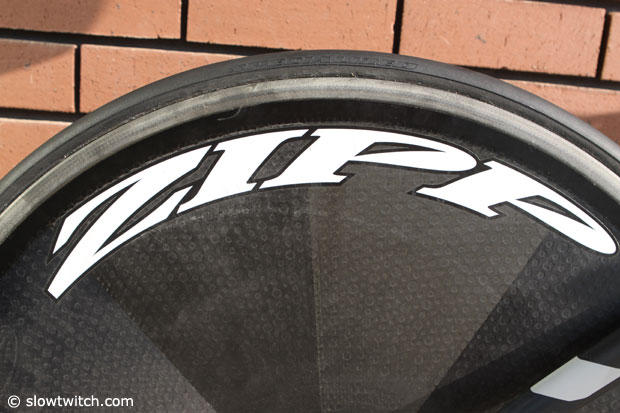 A Zipp disc in the rear with Specialized Turbo 23 tires.