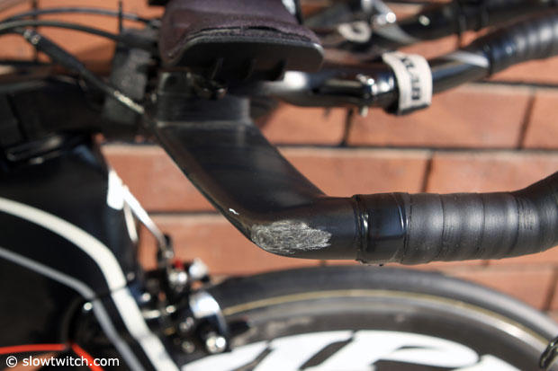 Hauschildt had just added this red Specialized Sitero before the race and was saddened that it is now scuffed.
