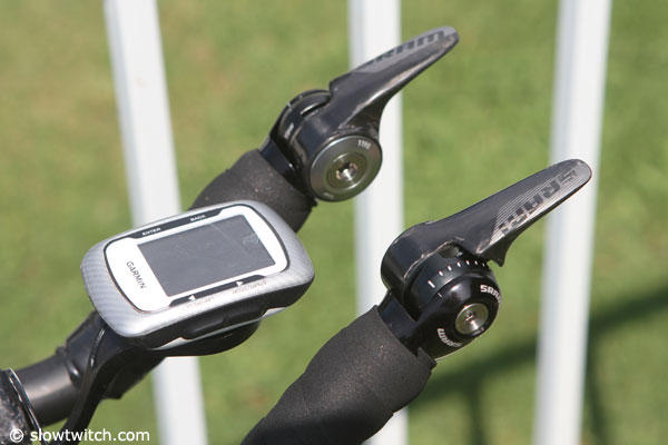 Up close with the Garmin head unit and the SRAM shifters.