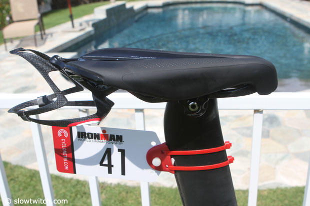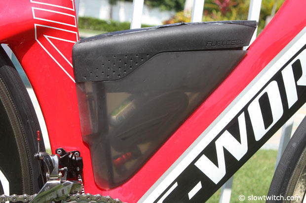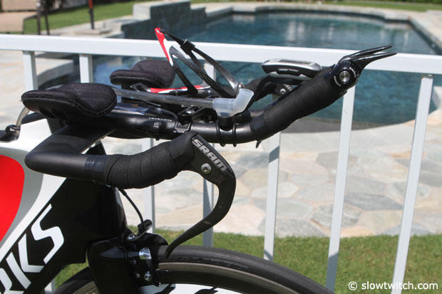 Hoffman has his pads relatively wide apart, but it seems to work for him. The Specialized Fuelselage was only filled with water but he has Clif Shot mix in the bottle.