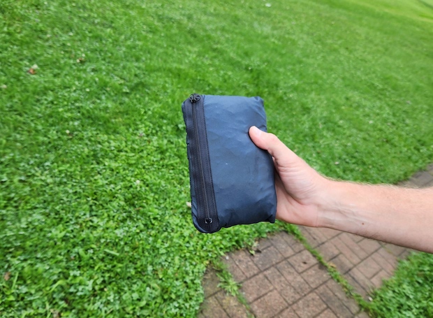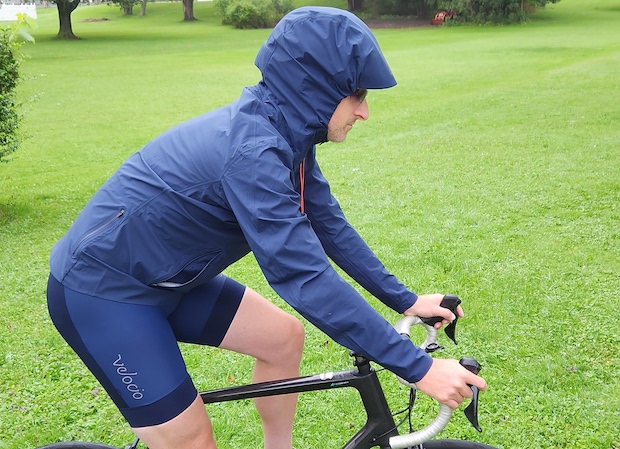 I found it easy to put on while riding the bike, which isn’t always the case for rain jackets with a two-way zipper. The jacket also breathes pretty well and offers protection from light to medium rain storms.