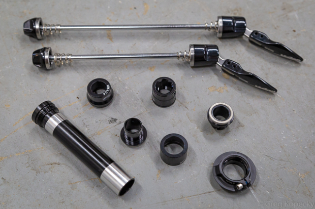Our test wheels came stock with end caps for quick release skewers. Fear not – a full complement of small parts come with every wheelset to accommodate 12mm thru axles.