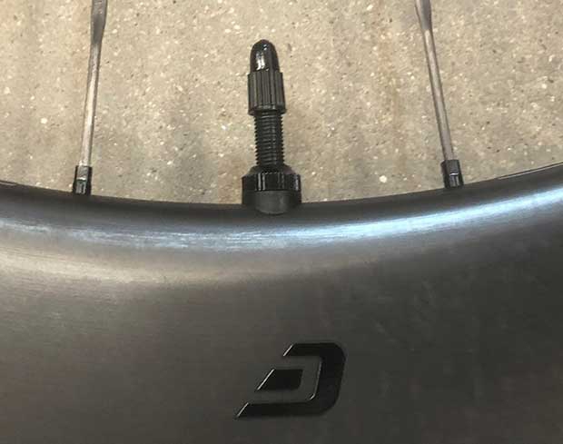 CADEX wheels also come with valves pre-installed. Other wheel companies don’t. Why? Because other wheel companies don’t assume their wheels are going to be used tubeless. This ambivalence is a mistake in my opinion. Pre-install the valves. Make the customer uninstall the valve if he or she wants to ride with a tube. (It’s not hard to remove a tubeless valve.) By preinstalling the valve, the customer has no choice or question on how or which or whether the brand’s valve will be installed.