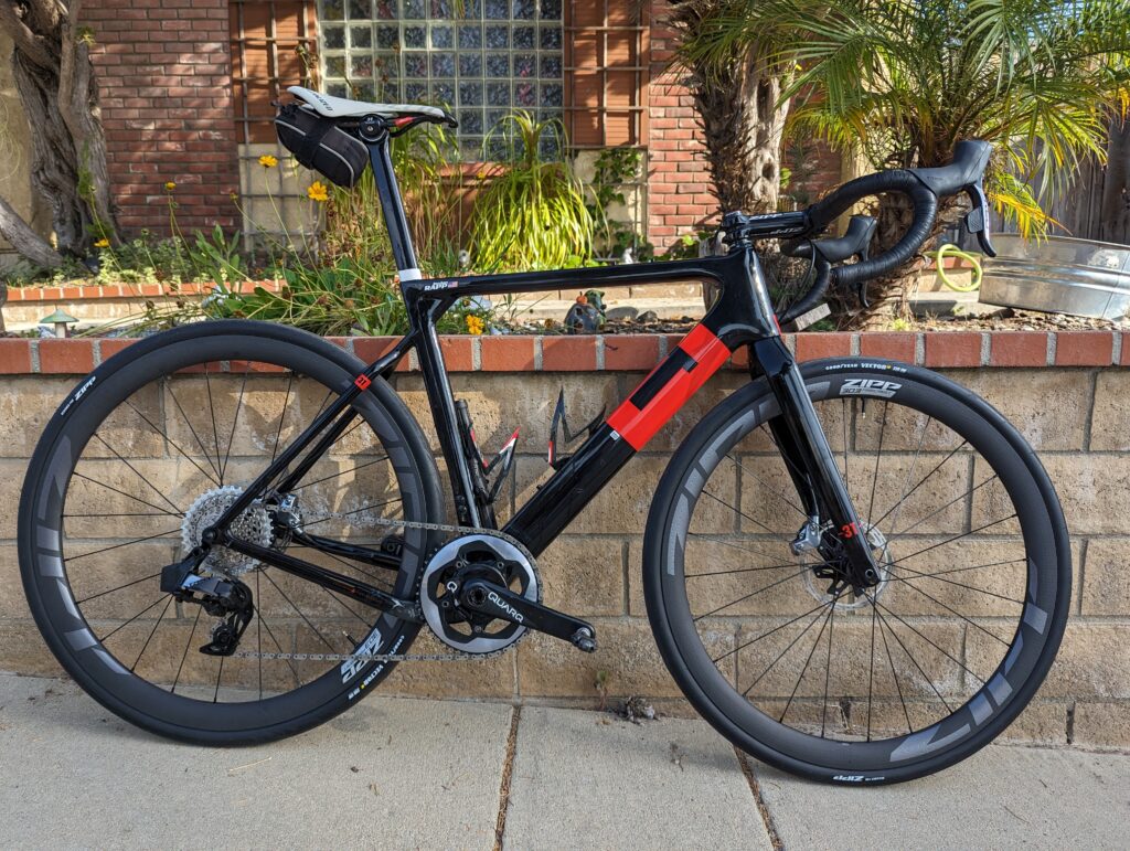 Unboxing the wheels, I was impressed with just how seamless the transition from tire to wheel is. It’s hard, even in pictures, to appreciate how perfectly the tire mates to the rim. And, of course, the aerodynamic story is something is essentially something you have to take on faith. But you can have that much more confidence in it because of the one big problem SRAM solves for you – tire pressure. I suspect because of changes to the wheels over time and a desire to avoid an overly long dropdown list, SRAM still makes you pick the bead type and the bead width rather than allowing you to pick a specific Zipp wheel. But you do get in addition to the generic casing options two specific ones for the Vector tires. This is where the system comes into play. Rather than picking a generic and rather subjective “casing” for your tire, you just specify which specific Goodyear Vector model you have. And then SRAM’s tire pressure guide – available both on the web and in the AXS app – gives you the exact pressure for your setup and riding style. In my case, that ended up being 45psi in the front and 48psi in the rear. Like most – probably all – “correct” tire pressures, this feels much too low, especially if you have any real experience riding on 21mm (or skinnier) tires at 120psi+. But then you get out of the road and forget about it and worry less about the quality of pavement or even if the road is pavement.