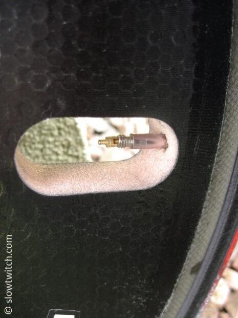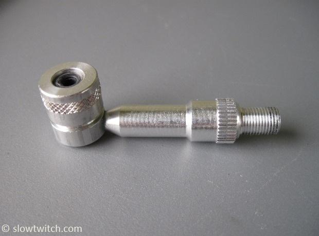 Now that it was time to inflate, I grabbed the Zipp-supplied inflation adapter. This device is unofficially known as a disc wheel “crack pipe”. Wonder why?