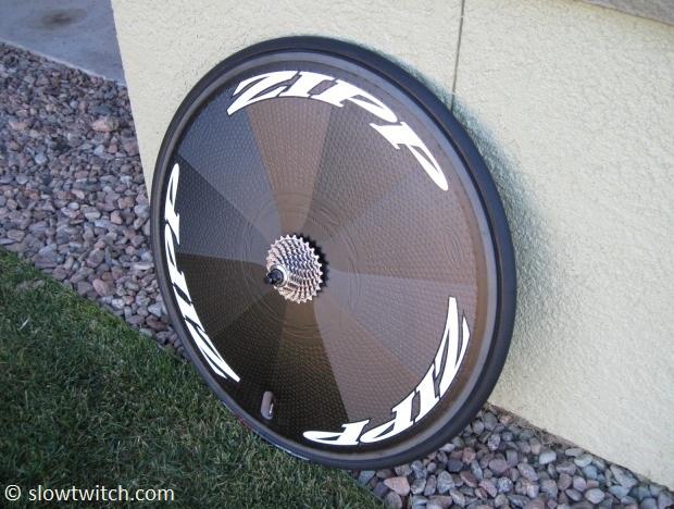 It’s good to see many more top-level professionals getting on the clincher bandwagon. This wheel really debuted in the Spring of 2012, under riders on the Omega-Pharma QuickStep pro cycling team. More recently, many of Zipp’s triathletes are switching to clinchers as well. Long-time Zipp clincher users include Jordan Rapp and TJ Tollakson. In Kona this year, however, big names such as Marino Vanhoenacker and Mirinda Carfrae made the switch. Both are former staunch tubular riders. It’s now commonly known that clinchers can be as-good-or-better than tubulars in the rolling resistance department, and if what Zipp tells us is true – they’re equal or better in aerodynamics. The weight delta continues to shrink, and the convenience factor cannot be ignored. The price is high, but you’ll get over that pretty quick… if you angle the light just right, you can see each individual “pie slice” of Zipp disc that will instantly make your wallet forgive you…