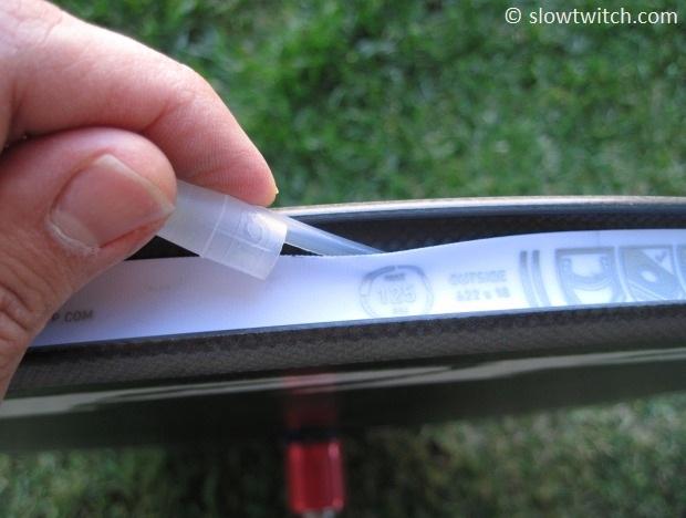 Rim tape is intended to cover up spoke holes, to keep them from puncturing your inner tube. While this wheel obviously has no spoke holes, Zipp provided rim tape nonetheless. My guess is that this is to ensure that punctures can’t be caused from any rough edges at the valve hole. Whatever the reason, they supplied it, so I used it.
