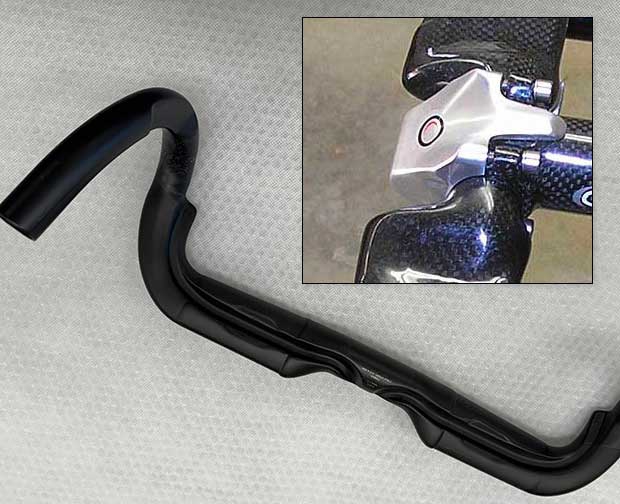 You run your hydraulic line as I did, to the point just before the stem and then the lines fly into space, commando, until they enter the frame (rear brake) and fork just below the crown (front brake). Or, the lines run just under the stem and enter the frame at the top cap of the headset (Cervelo R5 and Soloist; Specialized Tarmac). If you just can’t stand ever seeing a hydraulic line – ever – and you want your lines to run through the stem, these grooves head right there and you can bury these lines into and through the stem using this handlebar. (Which is not the thing a wise cyclist does; you know how I feel about that.)