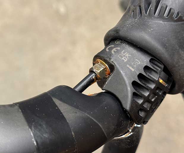 This meant that you give up certain things, such as an integrated front end and/or hydraulic lines through the stem. Because that’s just a stupid design decision anyway. (In my opinion.) If you want the perfect riding experience you need, for example, the perfect points in space where your contacts points sit. You need perfect ergonomics. You can’t get that unless you have the option to place your bars at exactly the right place in space. Right tilt. Right width. Right everything. Within, say 5mm of right in every plane. Which means the ability to make a change in minutes. And that means hydraulic lines external to the stem.
