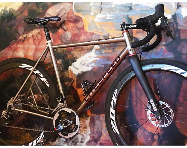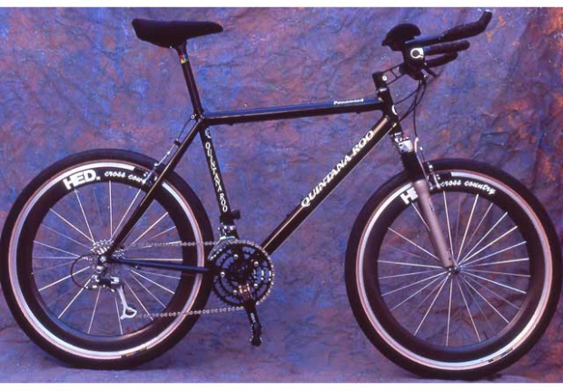 I started with road bikes and panniers, in the mid-80s. In the mid 1990s I made a bike called the Panamint, and you’ll see it in an image below. It was sort of an early gravel bike I guess you’d say – hardtail front-suspended bike with aerobars and 40mm slicks on a 559mm bead diameter (old MTB 26”) wheel. With aero wheels that could withstand offroad, and with aerobars.