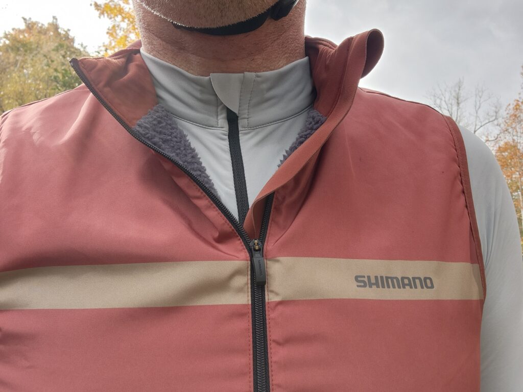 Recently, I wore this combination on a gravel group ride. The morning ride started in the low 30s, and there was a lot of scrambling among the group to decide what to wear. We expected the temperature to rise throughout the day into the 40s, but most of the day was in the high 30s. A wool short sleeve base layer with the Shimano Evolve jersey and vest proved once again to be the best choice. The group was large and there was lots of stopping to regroup after climbs and to repair a few flat tires. Our moving time was 3:30 with an elapsed time of 4:26; that is almost an hour standing around. I find those kinds of rides hard to dress for because you are getting chilled standing around, especially if you overdressed and your clothes are wet from sweat. The breathability of the long sleeve jersey combined with using the double zipper on the vest to regular temps throughout the ride proved to be the best possible way to stay warm (but not too warm) on the bike while moving and standing around on the side of the road.