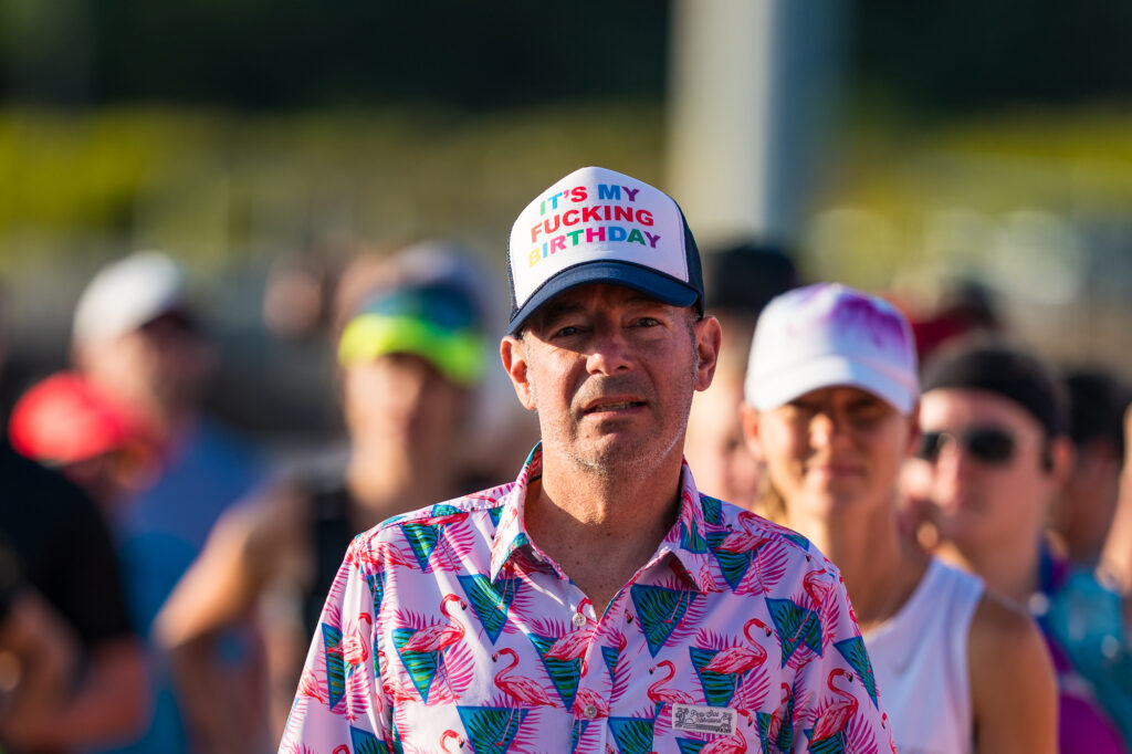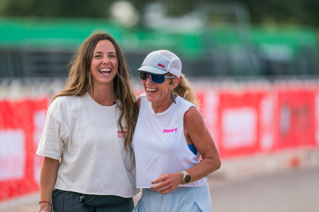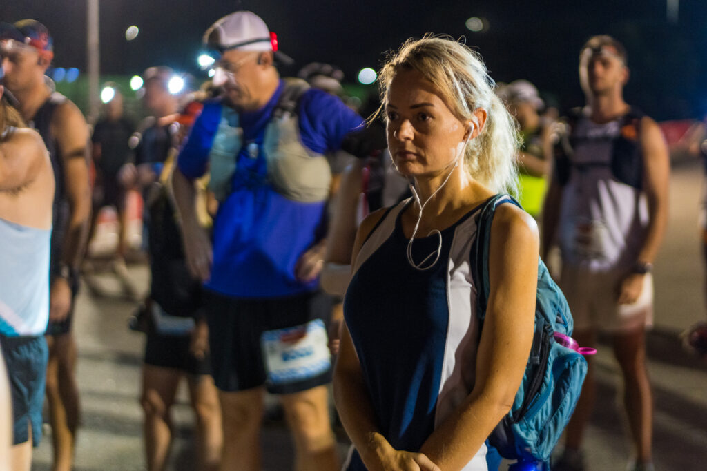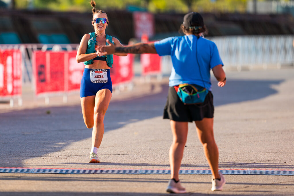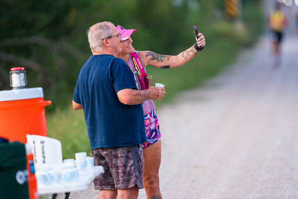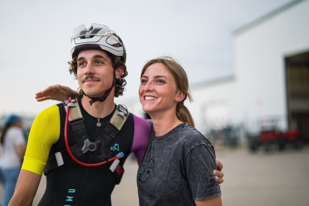 Abi Burke gets ready to send Eli Cullison off for the 300 mile challenge.
