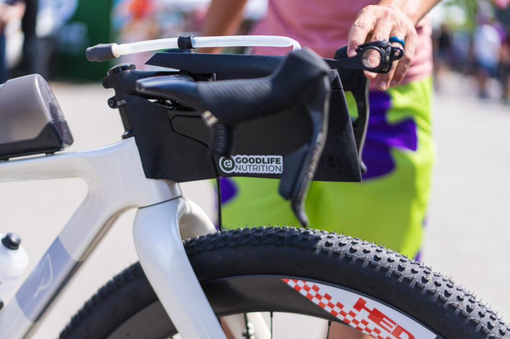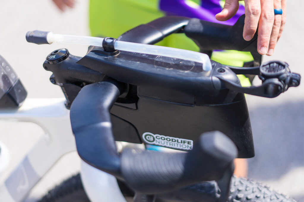 The top-tube bottle is Profile-Design’s RZ3 Top Tube Bottle