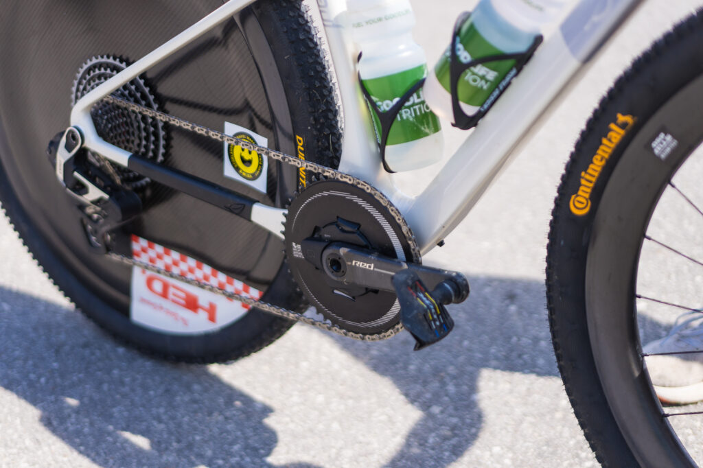 Wark uses Silca Wax on the SRAM Red XPLR drivetrain (and power meter) that includes a 1x 50-tooth Wolf Tooth Aero chainring and a 10-46 cassette. He uses Keo Blade pedals.
