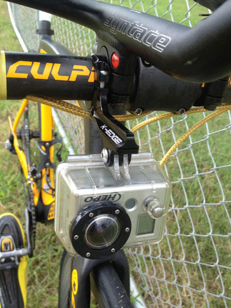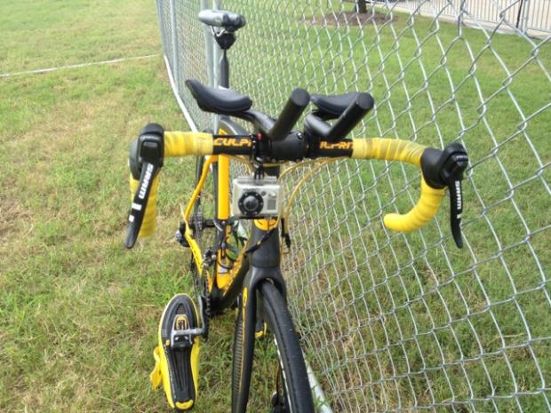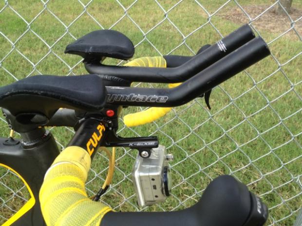 By adding a set of Syntace XXS clip-on aerobars we were able to achieve a comfortable time-trial position. With the road handlebars we had lots of room to attach the GoPro camera with a K-Edge mount system.