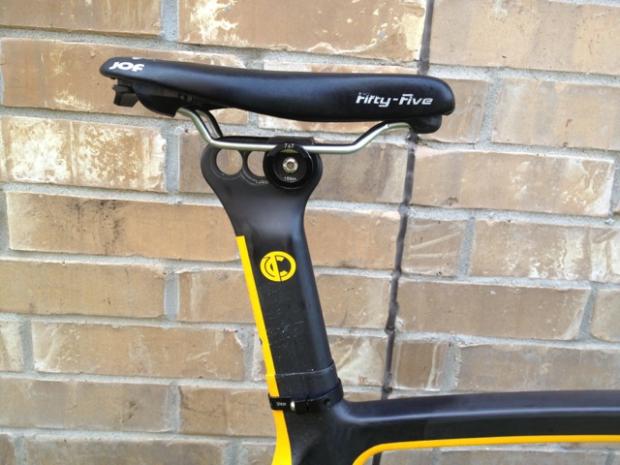 Three seat post options were available to accommodate a variety of ride positions. We chose to use the most aggressive setting which allowed for an easy to achieve time-trial position.