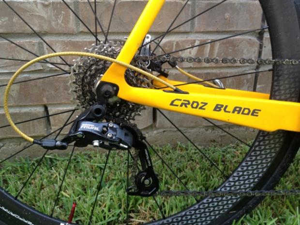 Croz Blade is spec'd with Culprit carbon handlebars, SRAM Rival components, Token C50 wheels, Prologo saddle and is compatible for both disc brakes and rim brake options. The GoPro Hero camera, Syntace XXS clip-ons and Cobb JOF saddle were added by the test rider.