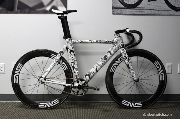 This unique hand etched Parlee show bike now sits in the ENVE offices.