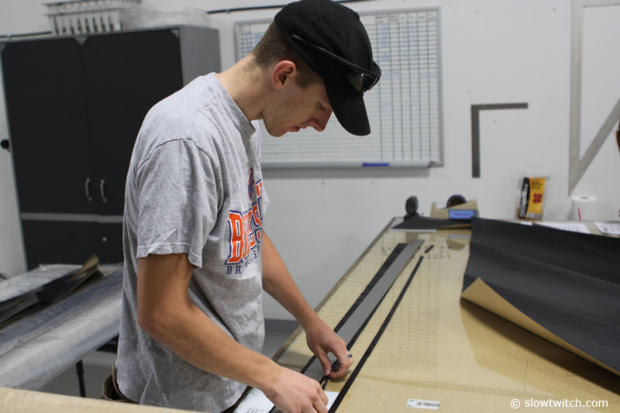 The sheets are kept in a freezer until they are getting worked on. Here Summer Ingles is starting to cut out patterns.