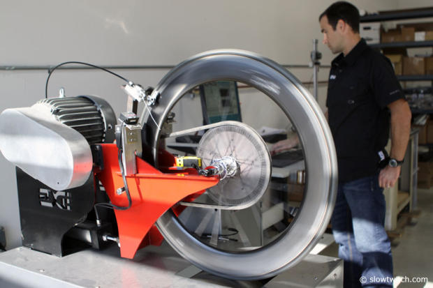 Testing Engineer Brent Pontious overseeing one of the wheel tests.