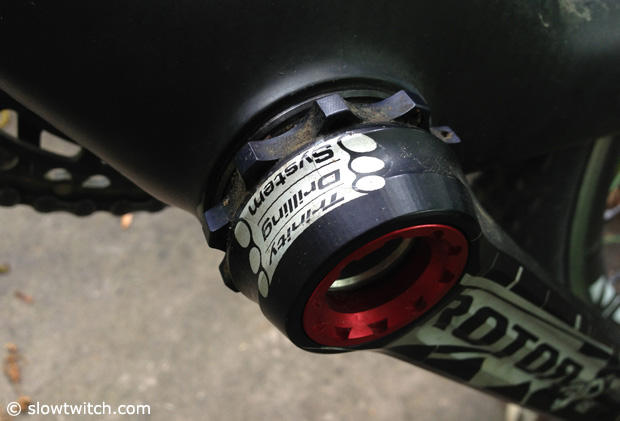 During this year the bike has been ridden hard with a variety of wheels and tires, but the cranks were never swapped out and had to work all the time. The graphics on the cranks look still as crisp as they did when they were first installed, and considering the wider Q factor of them that is somewhat surprising. I also expected that with all that body English on that cross bike, that the shoes, rocks or barriers would leave some marks on the graphics, but that has not been the case. The black and silver graphics are quite distinctive and while I personally like them very much and think that they'd go with most bike color schemes, they might be a bit much for some cyclists who might prefer a more stealth offering.