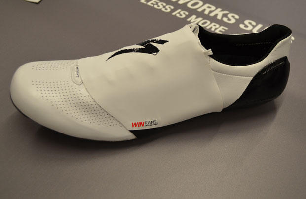 As a result of the famous shaved-leg wind tunnel test, Specialized began looking at footwear for speed savings. Developer lead Rob Cook (formerly of Adidas) and longtime Specialized collaborator Andy Pruitt worked together to create a faster and more efficient cycling shoe with claimed time savings of up to 35 secs over 40km. The savings in this category are difficult to quantify due to varying cadences and pedaling techniques, a fact Specialized was quick to point out, but preliminary data on max power output and duration showed time to achieving peak power took one second less and held max power longer.