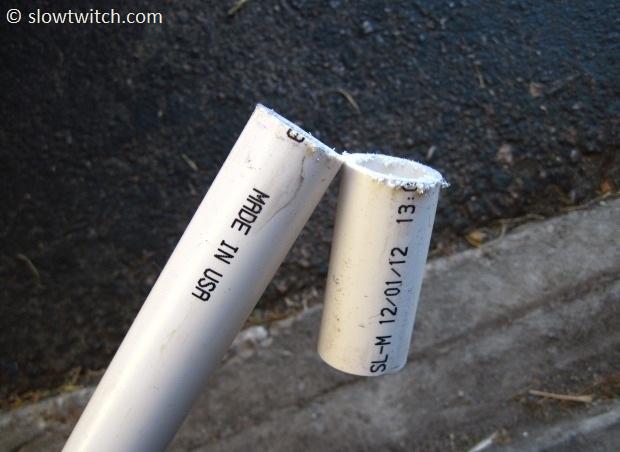 The list of materials is very short: PVC pipe and zip ties. The key is finding the right size PVC pipe. My local hardware store had many sizes, sold in convenient pre-cut 5’ segments. The cost of each piece is about two or three (US) dollars. Here’s what I bought: