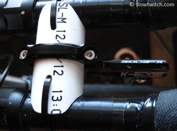 For final test fitting, you need to loosen or remove one of the aero extensions. That’s the only downside of this system – you can’t remove and install it as quickly as, say, a Profile UCM. With clip-ons like mine, you can loosen one of the mounting brackets, rotate it out of the way, slide the accessory mount in place, and raise the extension back in to place. For integrated bars with fixed extensions, you would need to completely remove one of them.