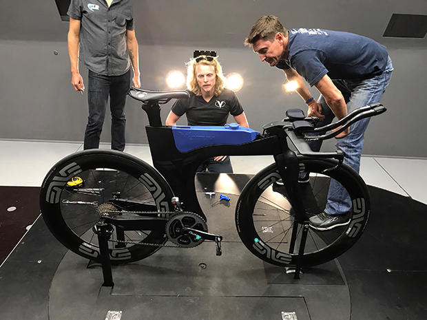 With Kiley done for this session, it is time for the Cervelo P5X to be tested without a rider. The bike was loaned to this test by Inside Out Sports.