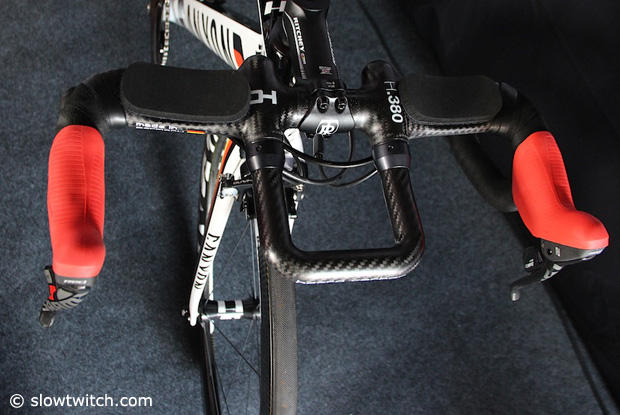 Anne Haug races on an Haero Carbon cockpit with a Ritchey WCS 4Axis stem and SRAM Red shift/brake levers.