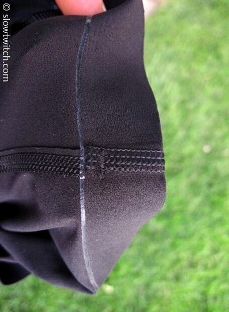 When you fold it over, however, you see that they simply doubled the fabric over for the last couple centimeters and welded it in place. The fabric resists stretching enough that a double layer acts as a very nice gripper. It feels like there is a definite end to the leg, without feeling bulky.
